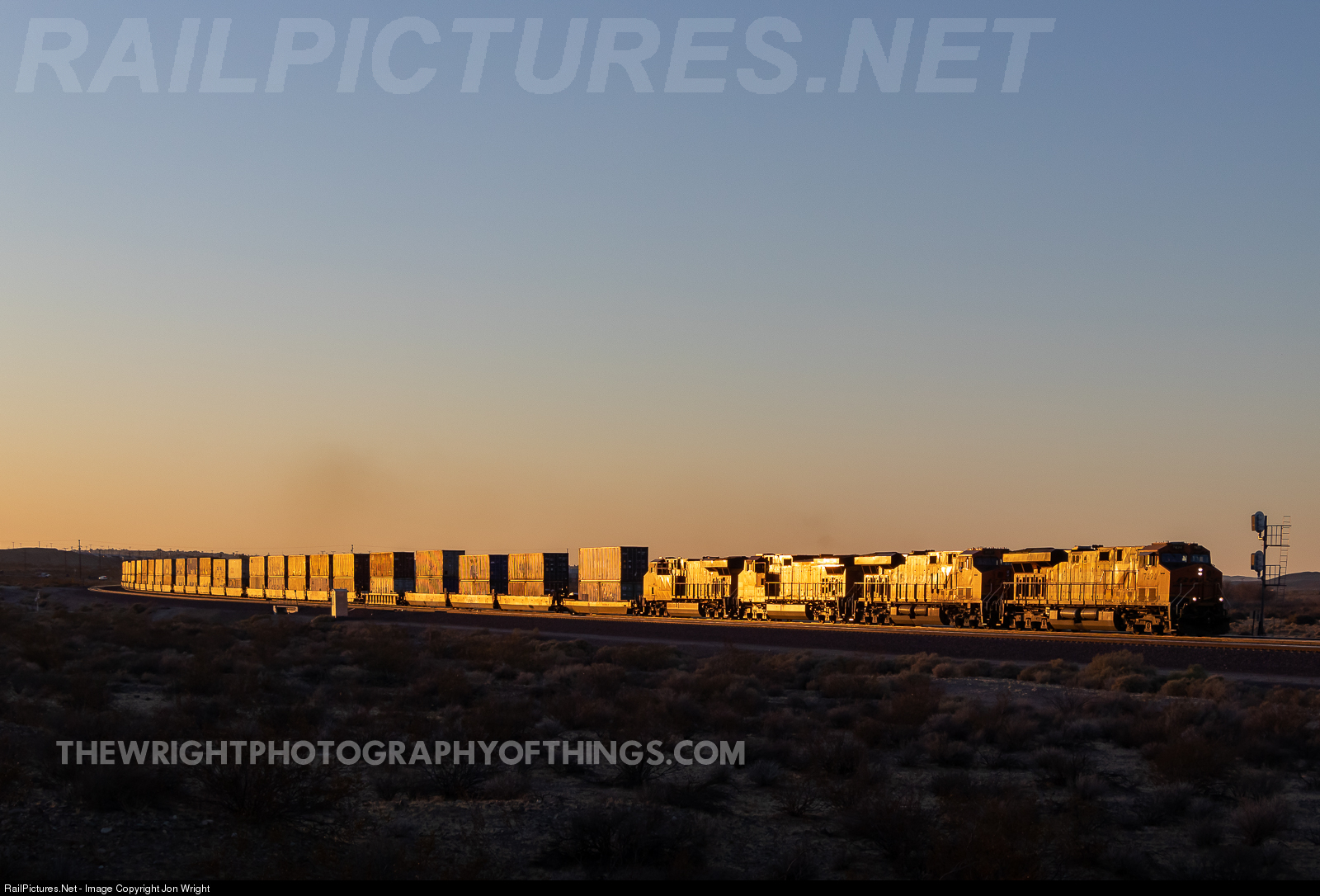 | An eastbound intermodal on the transcon outside Barstow, CA at West Daggett on Halloween, 2019. |
