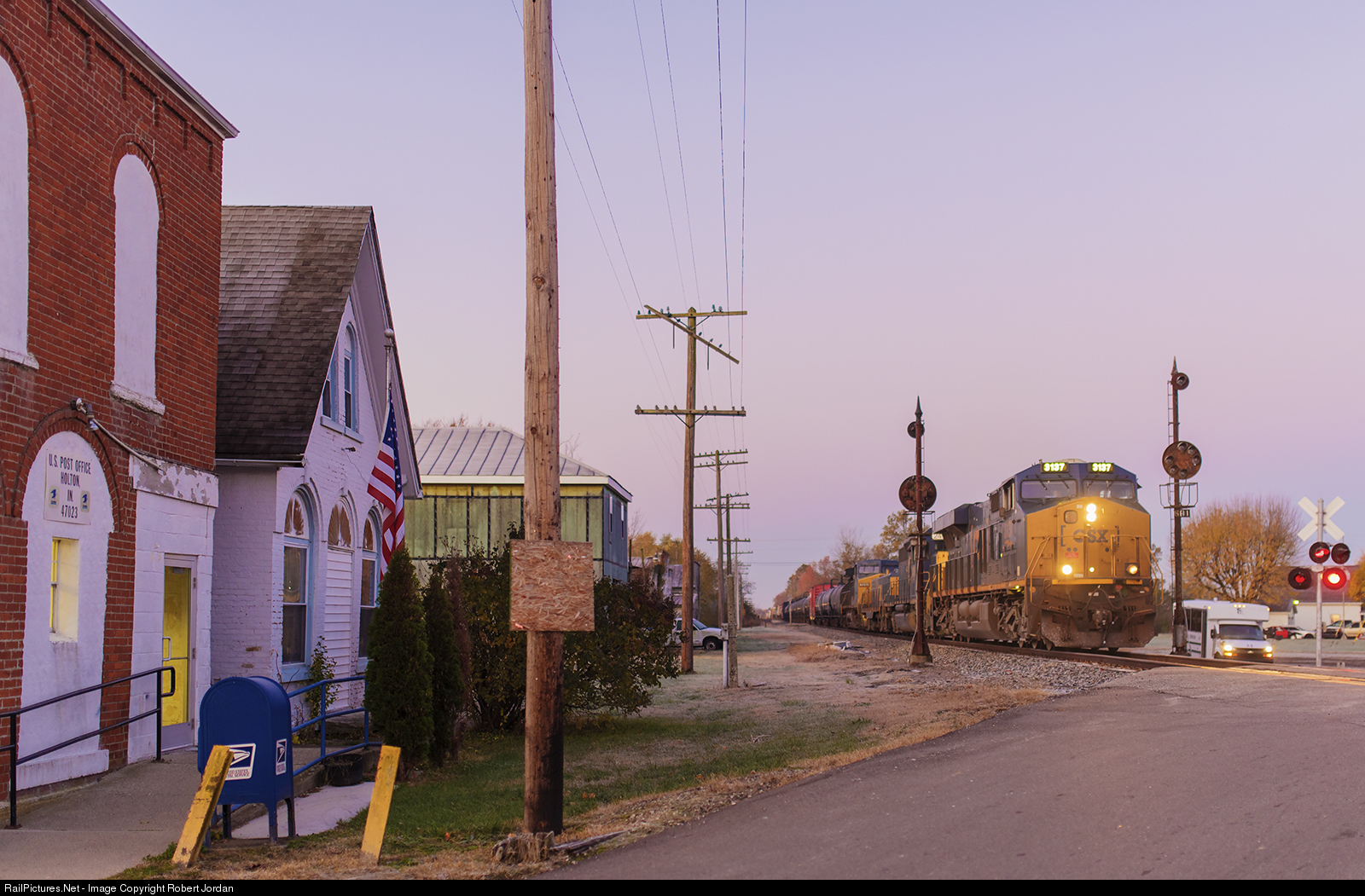 Eastbound splits the CPL signals passing the post office athe small town of Holton on the Indiana Sub.