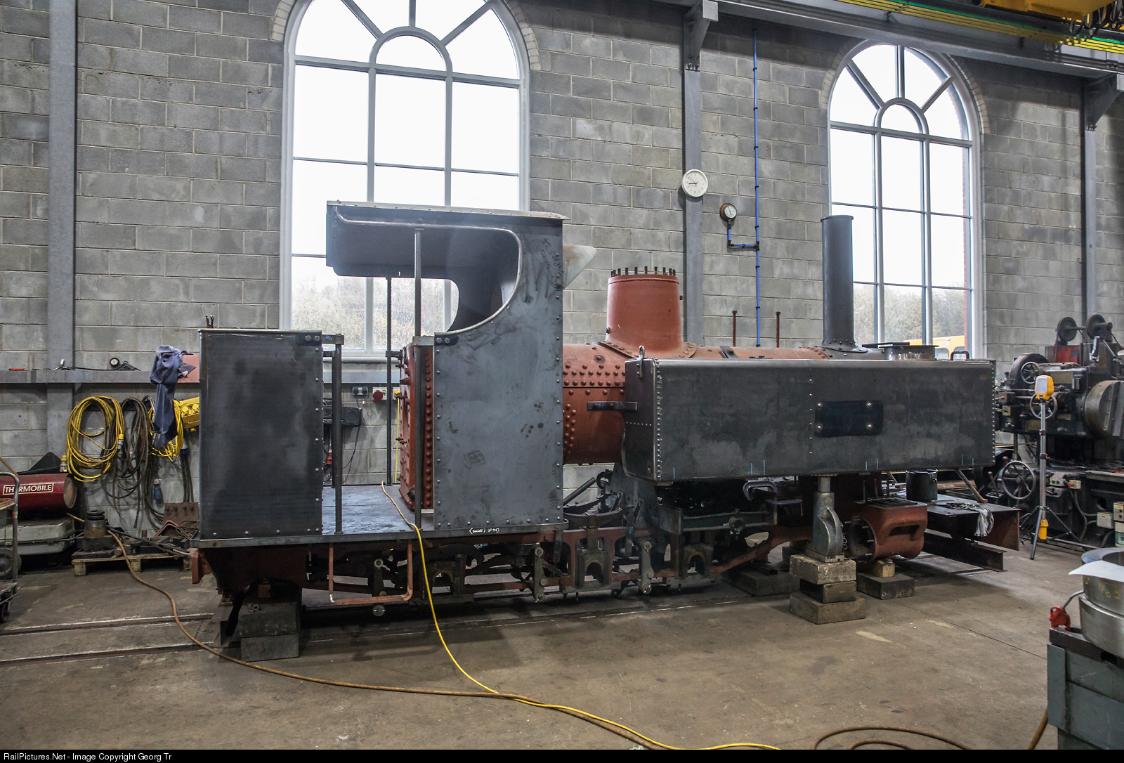 In the workshop of the Vale of Rheidol Railway is the Baldwin built Class 10-12-D # 794 of the Welsh Highland Heritage Railway undergoing contract restoration. This 4-6-0 T pannier tank engine was built 1916/1917 for the British War Office, together with 494 sisters. When the Great War broke out in August 1914 the French lost most of their locomotive building capacity in the Northern France to German occupied area. Therefore, the French Army demanded fast replacement of the locomotive building capacity for their useful 2′C n2t type which had proved to be a reliable locomotive type for the lightly laid military railways.Three steam locomotive type drawings were sent to Baldwin Works (finance guaranteed by the French Government) for production of C n2t, 2′C n2t, and light Mallet B′B n4v for 600 mm (1 ft 11 5⁄8 in) gauge lines. With the usual American liberty, Baldwin Drawing Office produced their "version Americaine" of these locomotive types. The first C n2t (based to Decauville design) came out in November 1914 and the first batch of 2′C n2t in January 1915. Only two more batches were built for the French. The British War Office decided to adopt the type as its principal military steam locomotive, and Baldwin started production in 1916, building 495 locomotives between October 1916 and April 1917. All were delivered except for nine which were lost at sea. After WW I many of this locomotives were exported to India. # 794 was repatriated in 1985 for the Imperial War Museum. It will carry the number "590" in future, being almost identical to the original WHR locomotive of that number, running in black paint scheme for the Welsh Highland Heritage Railway (WHHR), on long term loan of the Imperial War Museum.