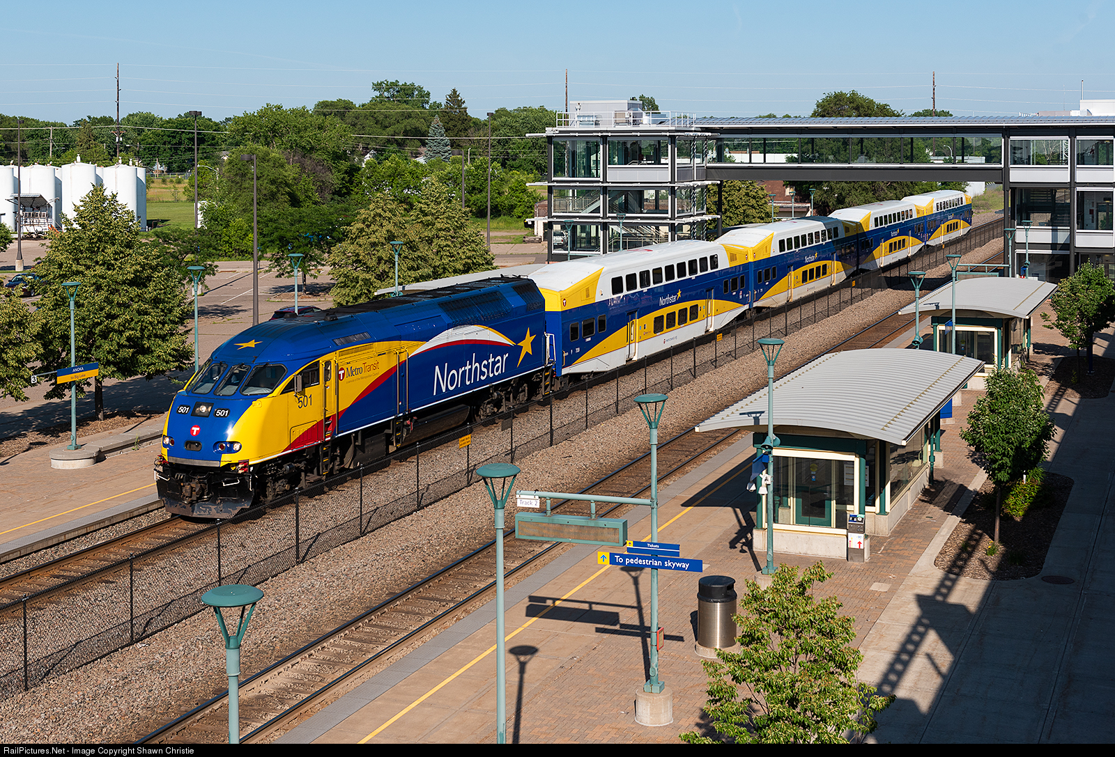 MNRX 501 leads the northbound commuter at Anoka Station.
