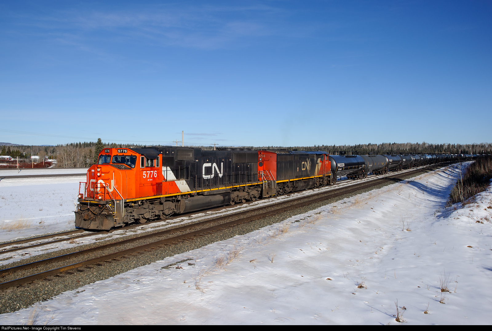 CN SD75I 5776 and C40-8M 2454 lead a unit train of propane west on the Edson Sub destined for Prince Rupert.