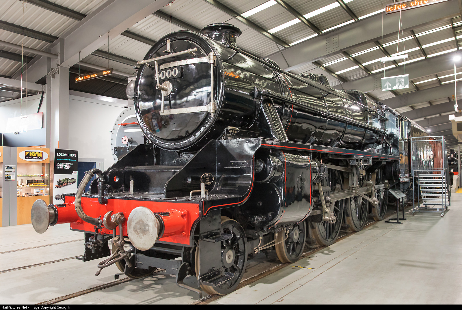 | The 4-6-0 # 5000 of the LMS (London, Midland and Scottish Railway) is a Stanier Class 5 built in 1935 in the LMS Crewe works. 842 locomotives of this class were built and # 5000 was choosen to repesent the class 5 in the National Railway Collection. Since January 2016 she is on display at the Shildon Locomotion Museum in County Durham. |