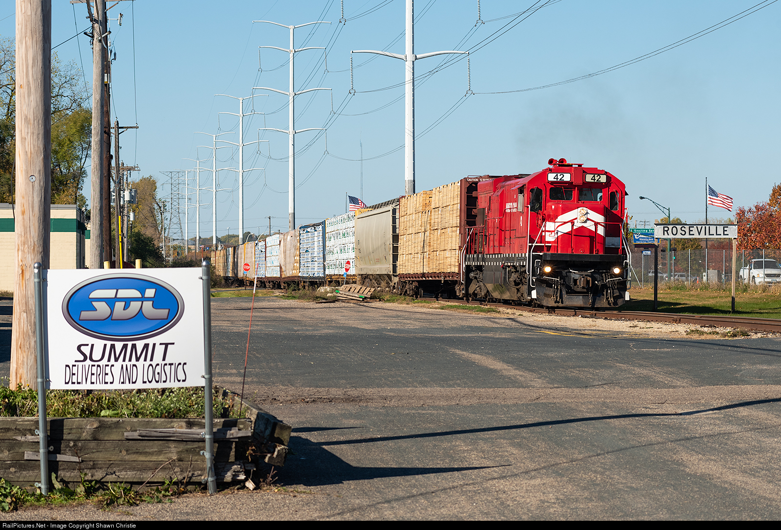 MNNR 42 brings the Hugo job north through Roseville.