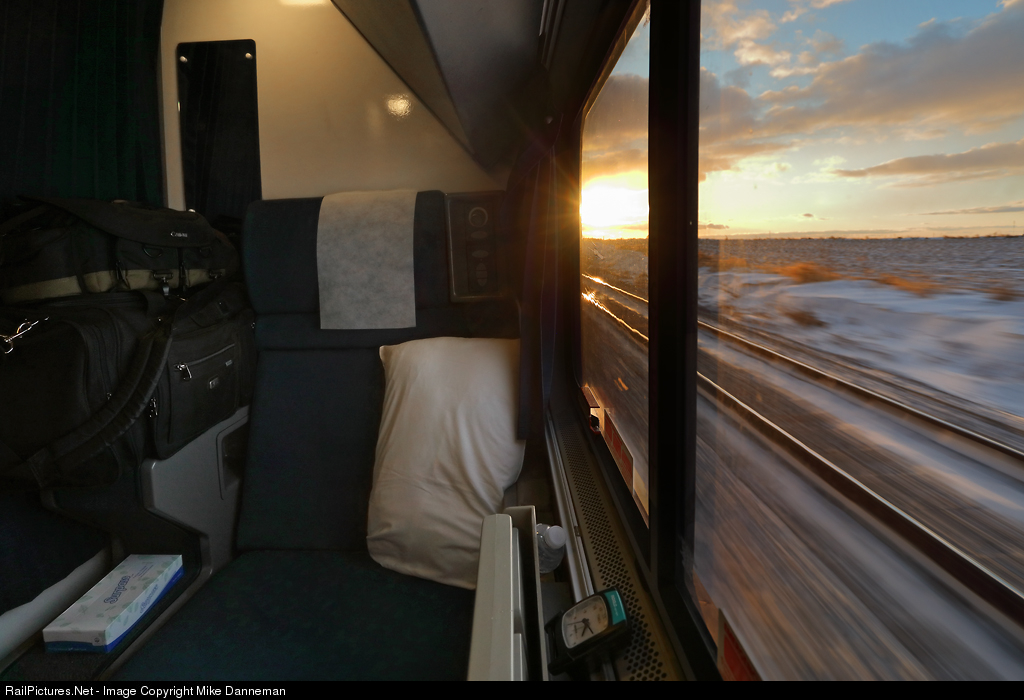 It’s getting dark early on this autumn day as Amtrak’s westbound California Zephyr chases the setting sun at Arlington, Illinois, on November 11, 2019. It’s really cold out this evening, but I’m comfortable in Roomette 13 watching rural Illinois farmland roll by as I relax for a while before dinnertime.