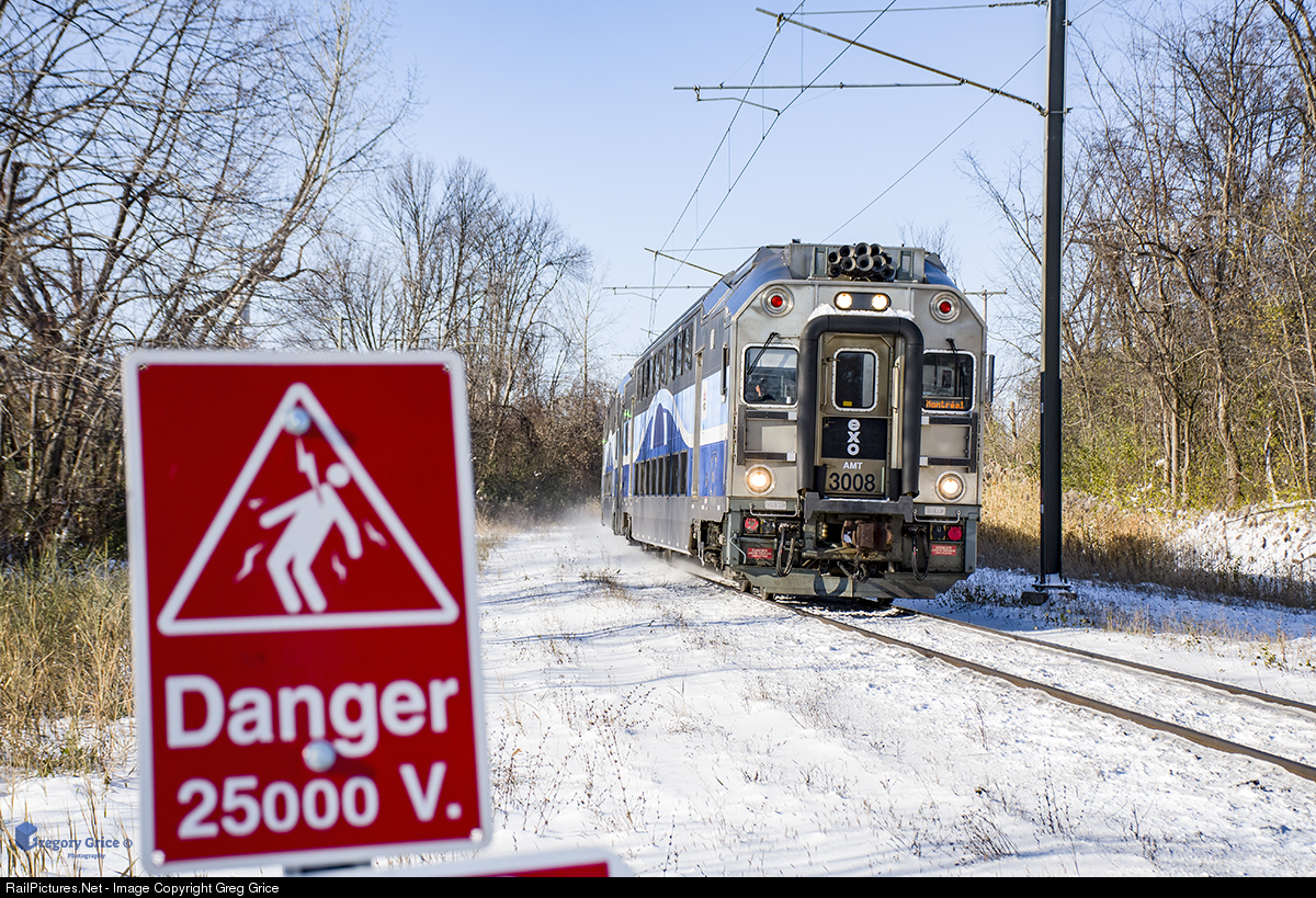 A southbound Exo Deux-Montagnes passes by one of many warning signs scattered throughout the line while approaching Alexander Street in Pierrefonds, QC. This train, oddly enough, consisted of a small trainset borrowed from the Mascouche line. The Deux-Montagnes Line is currently being converted from heavy rail commuter to light rail meaning many distinctive traits of this line, including the one off Bombardier MR-90 rail cars, will be eliminated or changed forever.