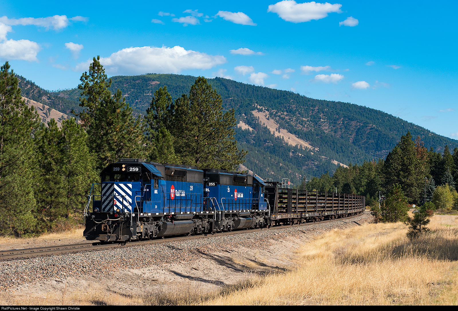 | MRL 259 and 255 have the honors of bringing rail up to Tuscor, the location of a recent derailment of about 30 coal cars. This was the first train we ran into on our MRL adventure. |