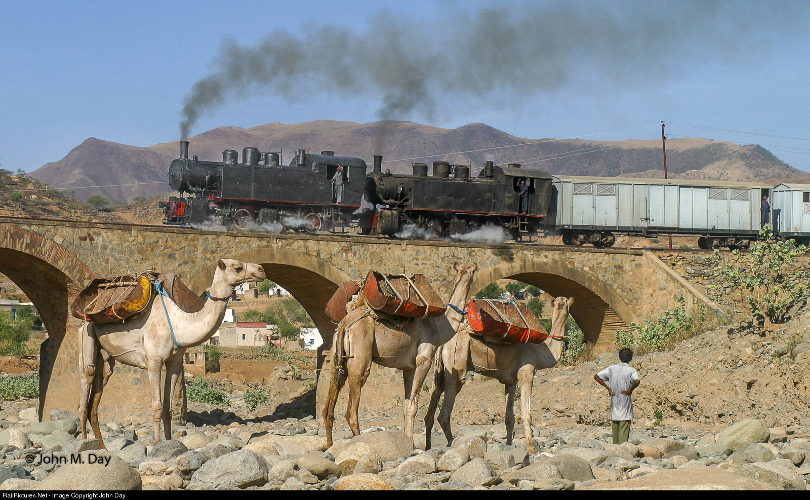 The bemused camel driver was quite happy to be paid a dollar to take a break while his beasts looked on, unimpressed with the steam trains or the foreigners who were there to enjoy them.