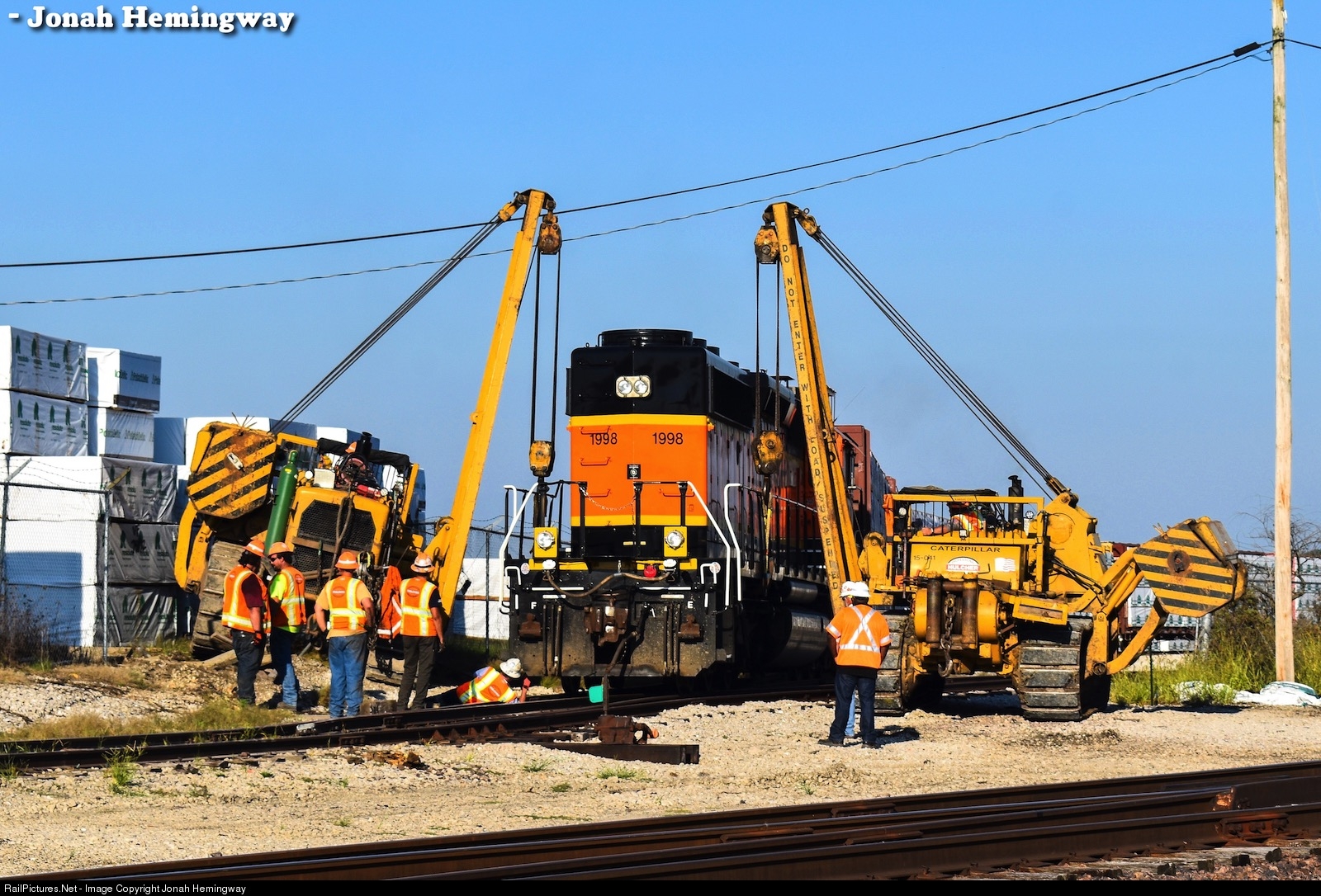 BNSF 1998 being lifted back onto the rails after derailing at an industry on Golden Ave.