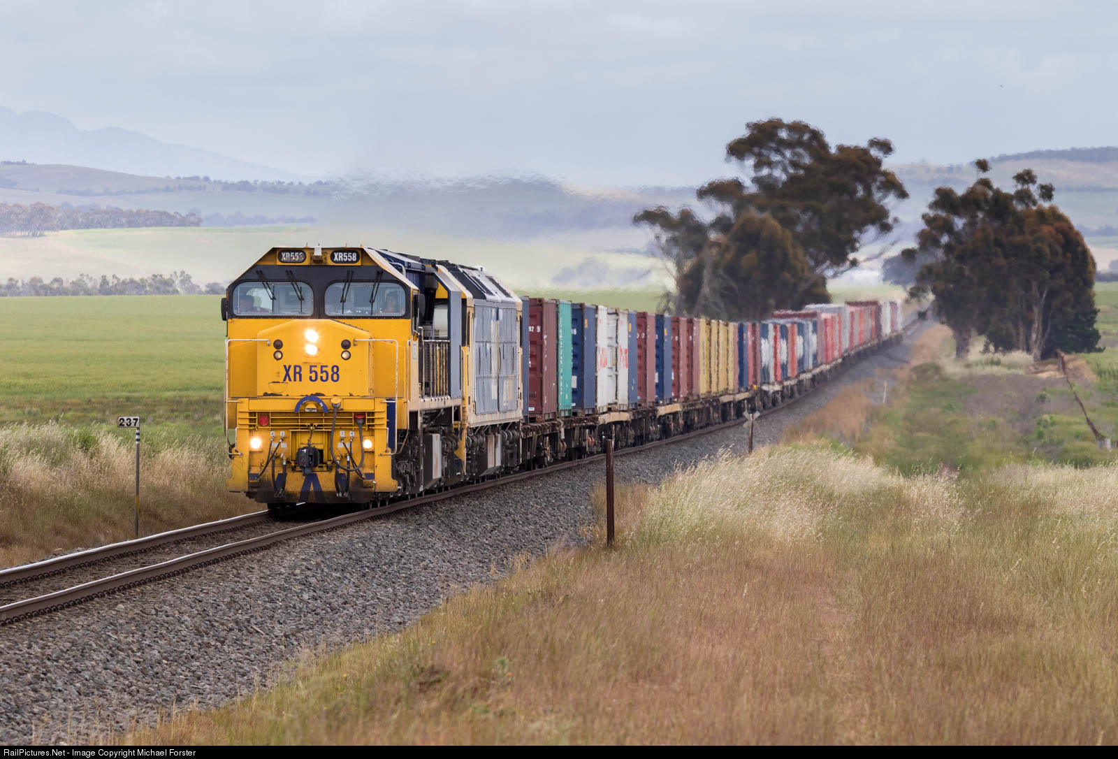 | The "Mildura Fruit Flyer" heading along the Western mainline, with XR558 and BL27 providing the horses. |