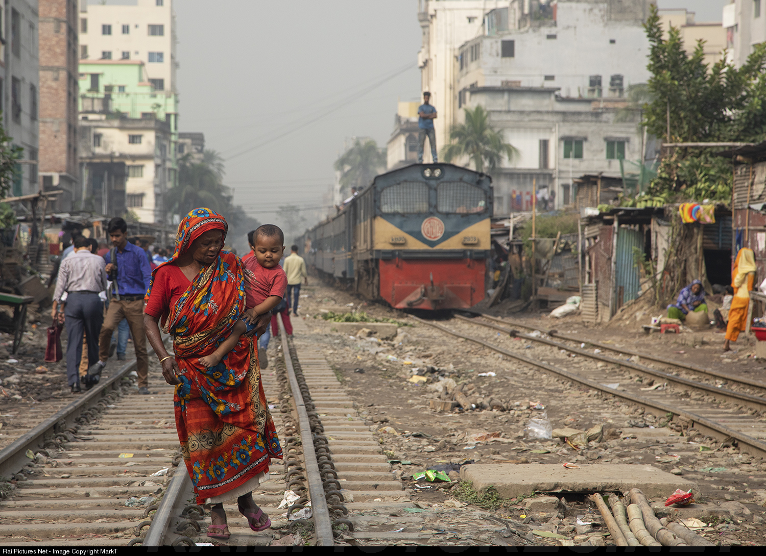 Life carries on as normal, whilst the Turag Commuter train approaches Dhaka with a train full of workers behind one of the strangest looking ALCO descendants, a YDM4B.