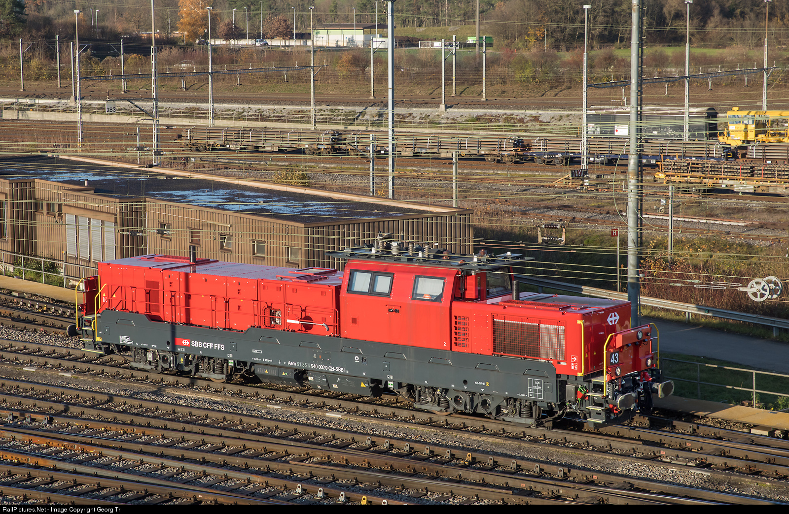 | The Aem 940 # 002 of the SBB, built by Alstom, is a heavy bi-modal (diesel and electro) shunter and for work train service. Working as shunter # 43 in the RBL (Limmattal shunting yard), there is missing the pantograph and the locomotive is in diesel mode. |