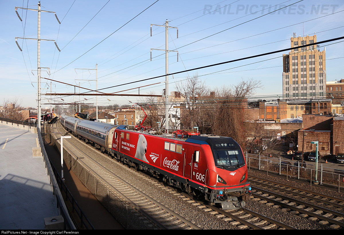 | Amtrak 606, the Coke Machine, hustles south through Elizabeth. |