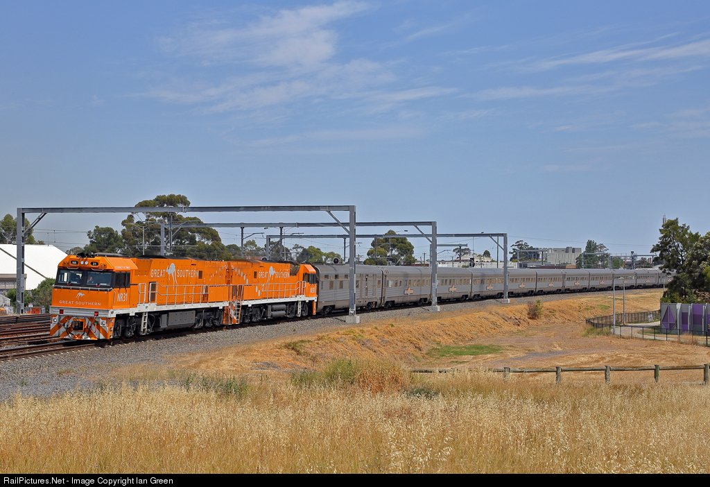 NR31-NR30 work 2TA8 Great Southern service from Brisbane to Adelaide through suburban Sunshine.