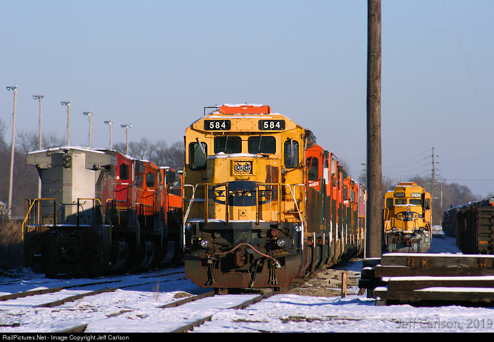 Topeka's East Field has been a holding area for stored engines for quite some time, and when I recently noticed that Santa Fe-painted B40-8 no. 584 was on the end of one of the tracks, I had to get up to shoot it. As best as I can recall, this, and the 577 are the last two of this class still in their original colors. The other units visible here are C44-9W no. 656, and GP30u no. 2474.