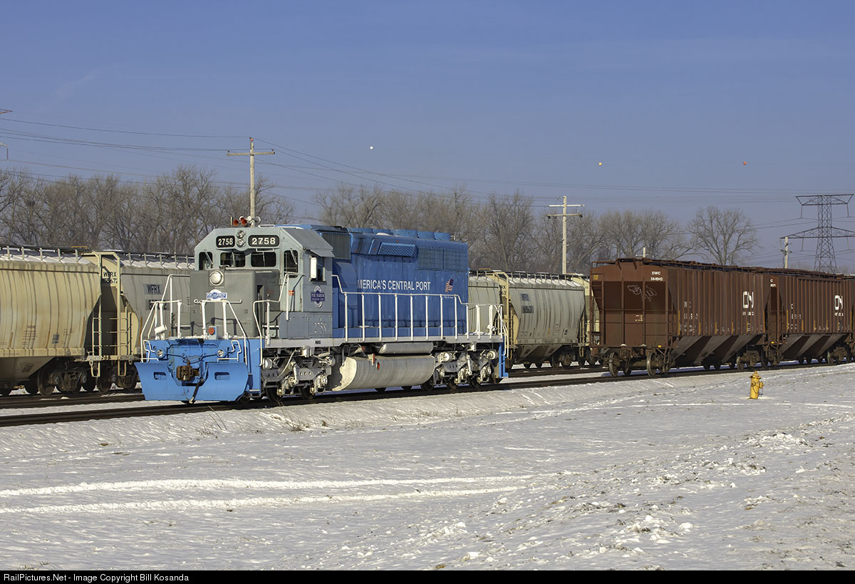 PHRR 2758 sits idling alongside strings of grain cars at America's Central Port in Granite City, Illinois.