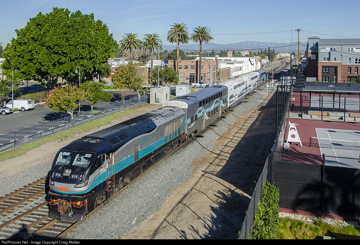 Metrolink train 687 bisects Chapman University as it heads from Laguna Niguel/Mission Viejo to Los Angeles. This train is led by cab car 669, with EMD F125 916 on the rear. This is one of those December days that makes the rest of the country think about moving to southern California, with sunny skies and warm temperatures (an expected high of 77º F) – but rain is in the forecast for next week, including Christmas Day. (Orange, California – December 20, 2019)