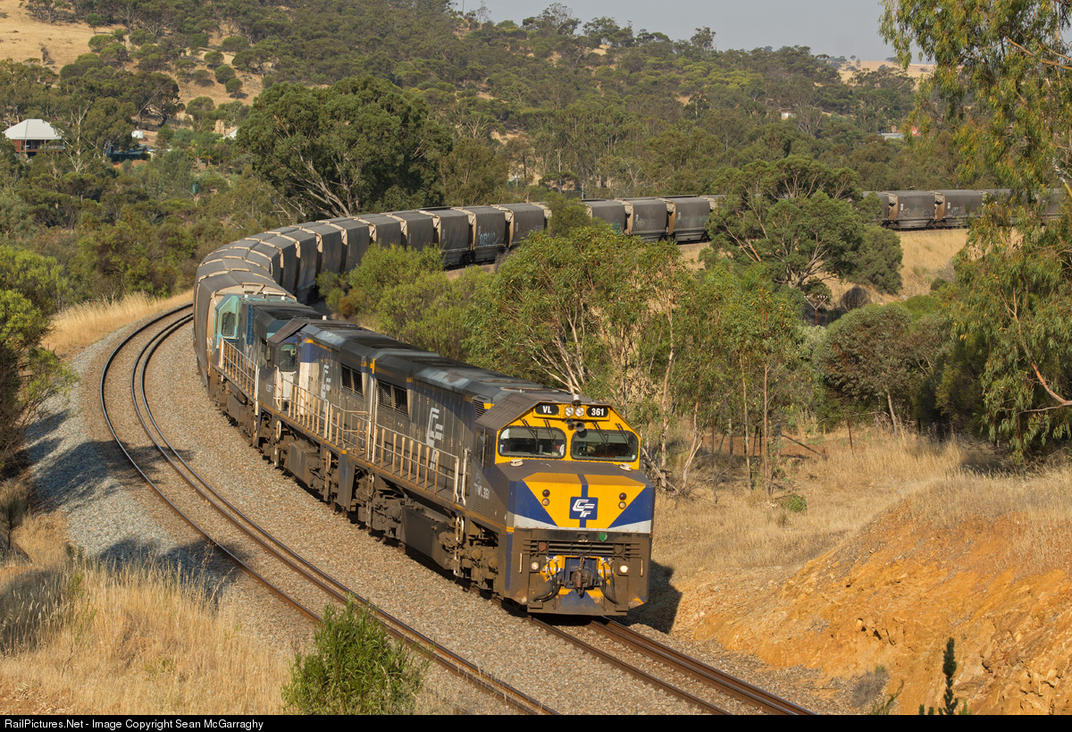 2S58 headed by VL361, VL357 & CBH122 hauls its grain train from Tammin to Kwinana Grain Terminal as it negotiates the horseshoe curve at Toodyay West.