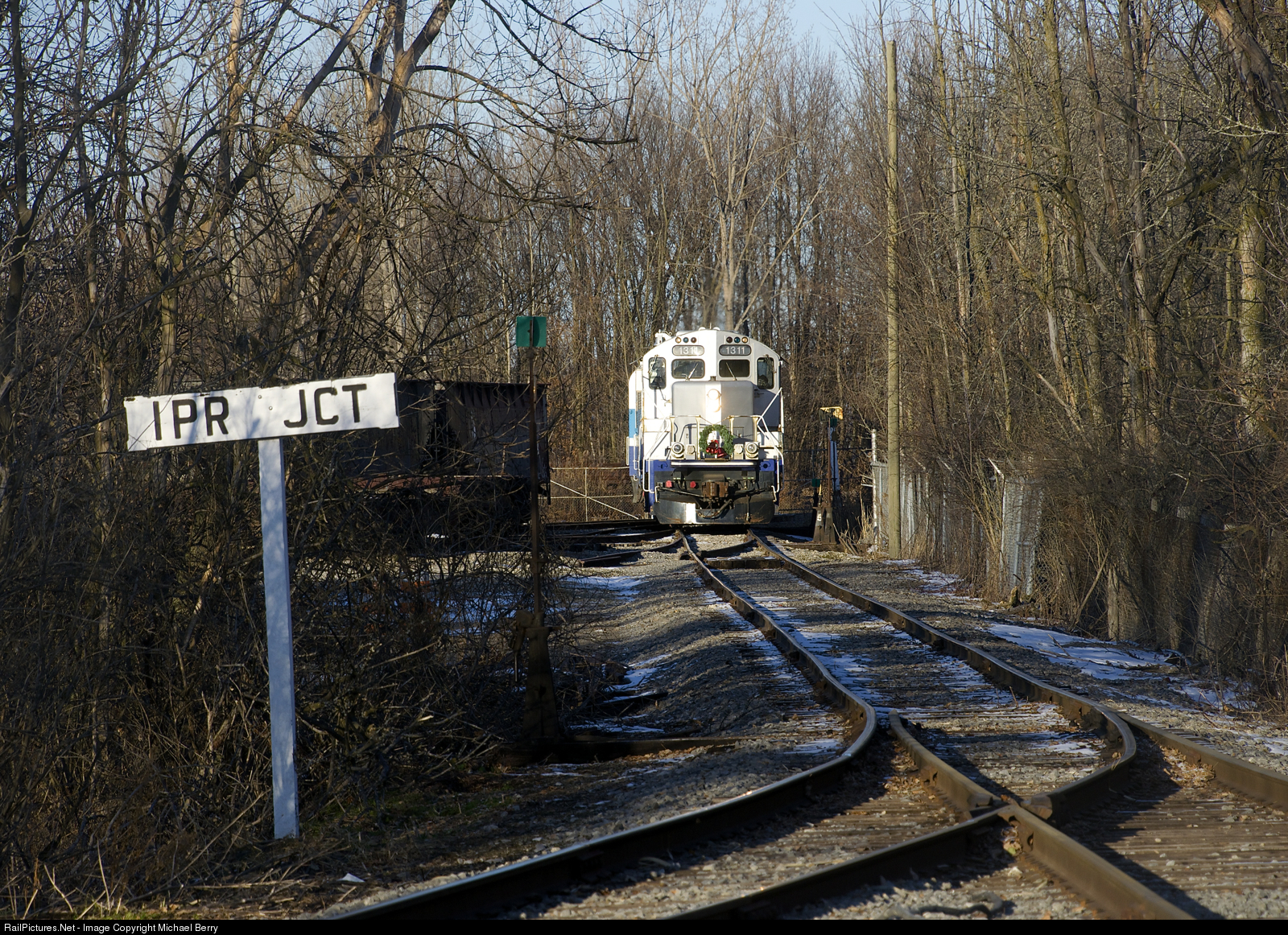 The Exporail Christmas train is stopped as the volunteers close a fence at the northeastern corner of the site. The 'IPR' in the 'IPR JCT' sign stands for 'Interprovincial Railway'.