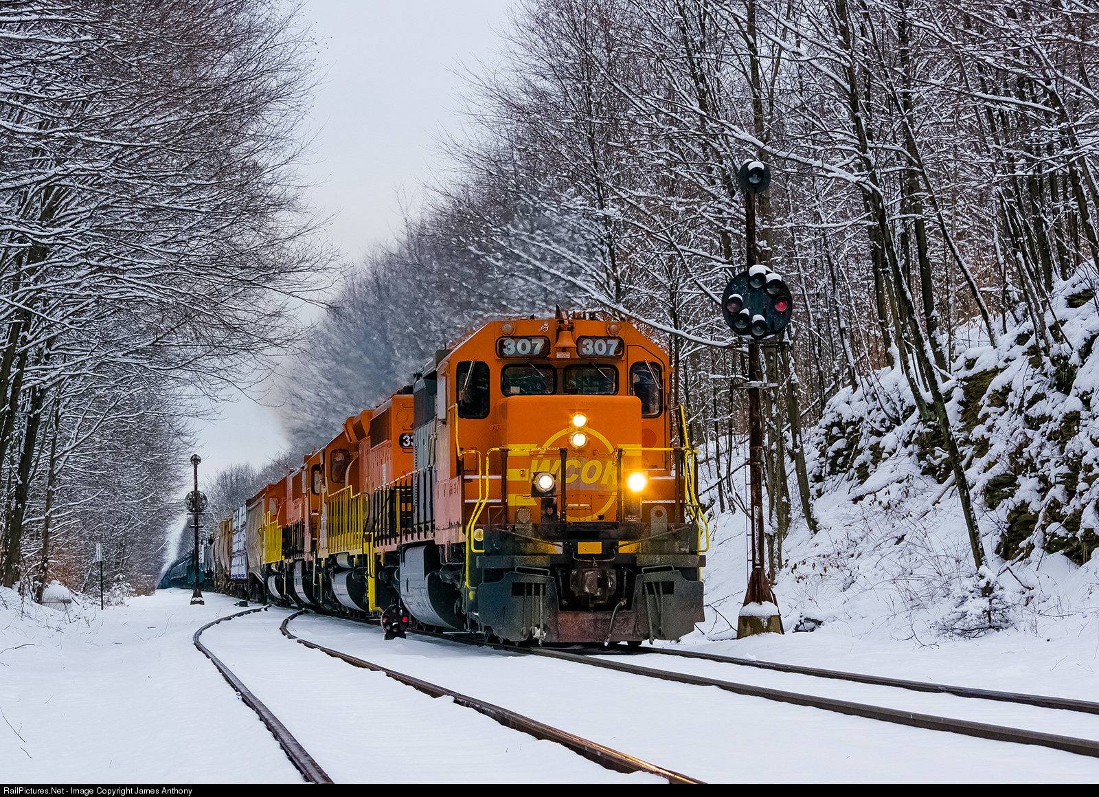 It will soon throw the dynamics on as it descends down the grade towards Johnsonburg with stopping at the yard for work, with a Wellsboro & Corning Leader and Fresh Snow. |