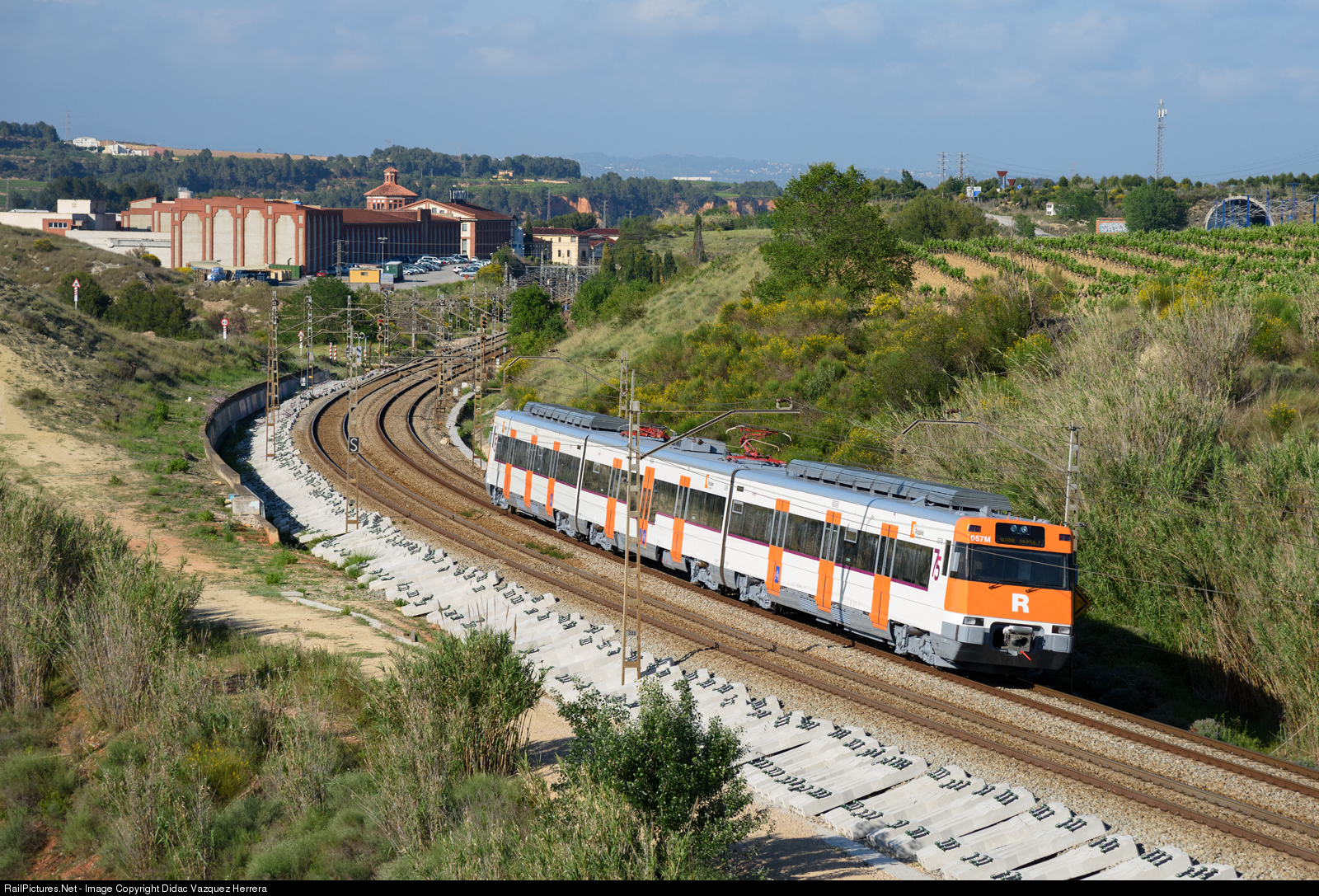 | Recently painted UT447 with "Rodalies de Catalunya" (Commuter train of Catalonia) livery and Renfe 75 aniversary logos in a transfer from Valladolid to Barcelona. |