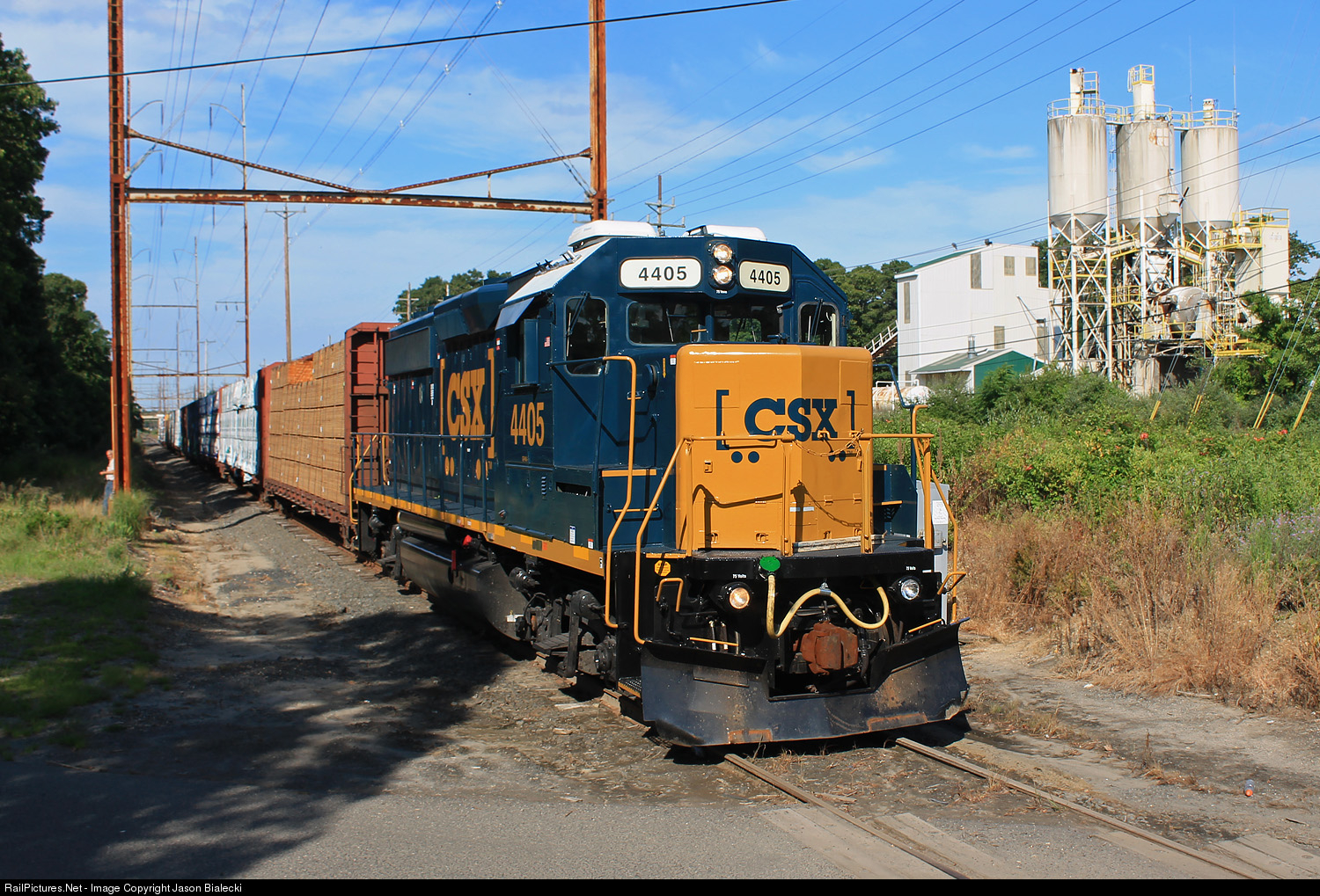 | Weekly local from Browns Yard to Lakewood is on the ex-CNJ mainline, CSX 4405 approaches the last crossing in Tinton Falls, the Hamilton Rd. crossing. |