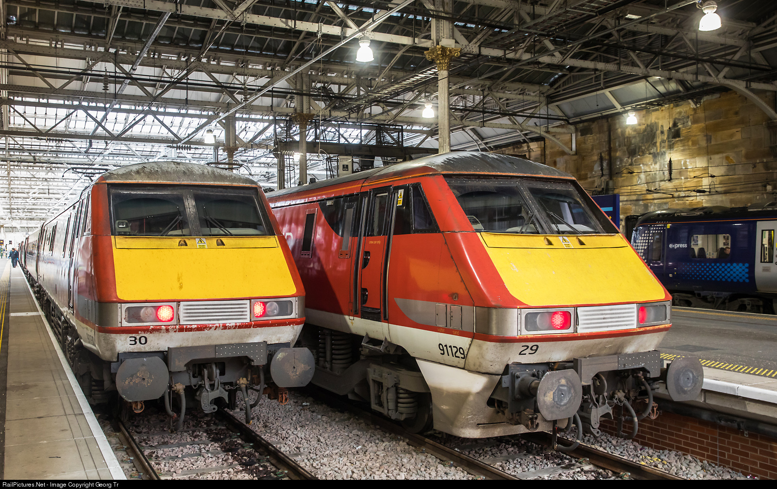 RailPictures.Net Photo: 91 130, 129 LNER (London North Eastern Railway) Class 91 at Edinburgh, United Kingdom by Georg Trüb