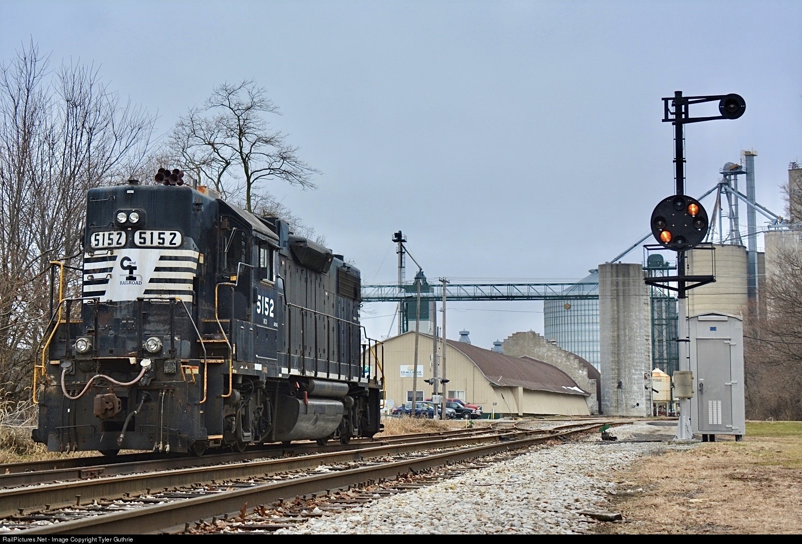 | An ex-NS high hood GP38-2 sits next to a C&O era CPL signal in Wellsboro, IN. The 5152 is rumored to be painted in CKIN's new Southern-inspired color scheme in the distant future. |