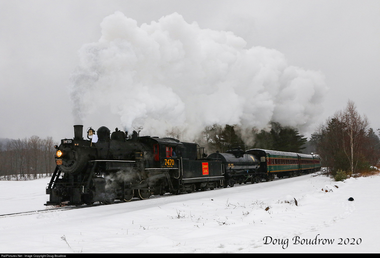 | On January 4th, 2020 The Massachusetts Bay Railroad Enthusiasts ran their popular "Steam In The Snow" event at the Conway Scenic Railroad. Although this event has been run many times in the past, this was the first time it has occurred in five years due to the 1921 ex-Grand Trunk and Canadian National 0-6-0 #7470 being out of service for a mandated inspection, maintenance and repairs. The event proved to be as popular as ever with a sold-out train and dozens of chasers.