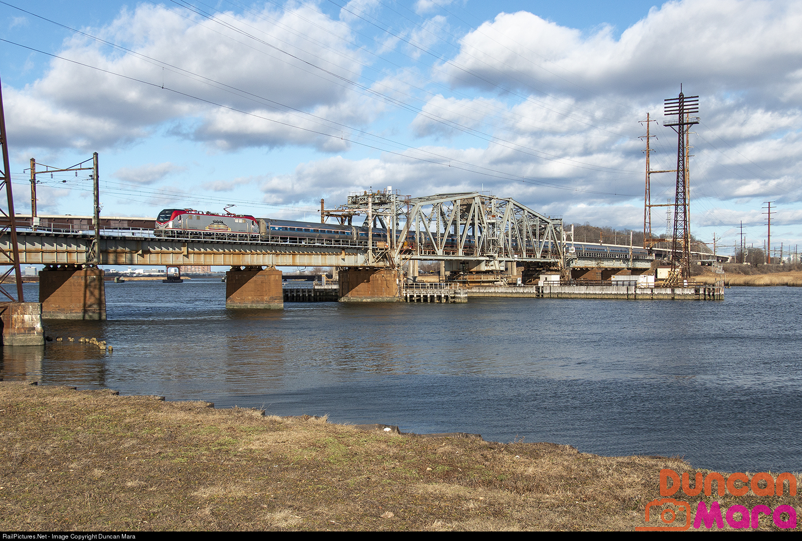 Amtrak 161 (5) crosses Portal Bridge in Kearny with the Veterans ACS-64 leading the way.
