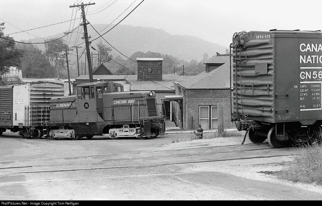 Claremont & Concord 44-Tonner 31 was working hard as it pulled a loaded boxcar up one of the hills in the street-running trackage in Claremont, NH, that was once part of the Claremont Electric Railway. The C&C's nimble 44-Tonners were well suited to negotiating the convoluted parts of the line.