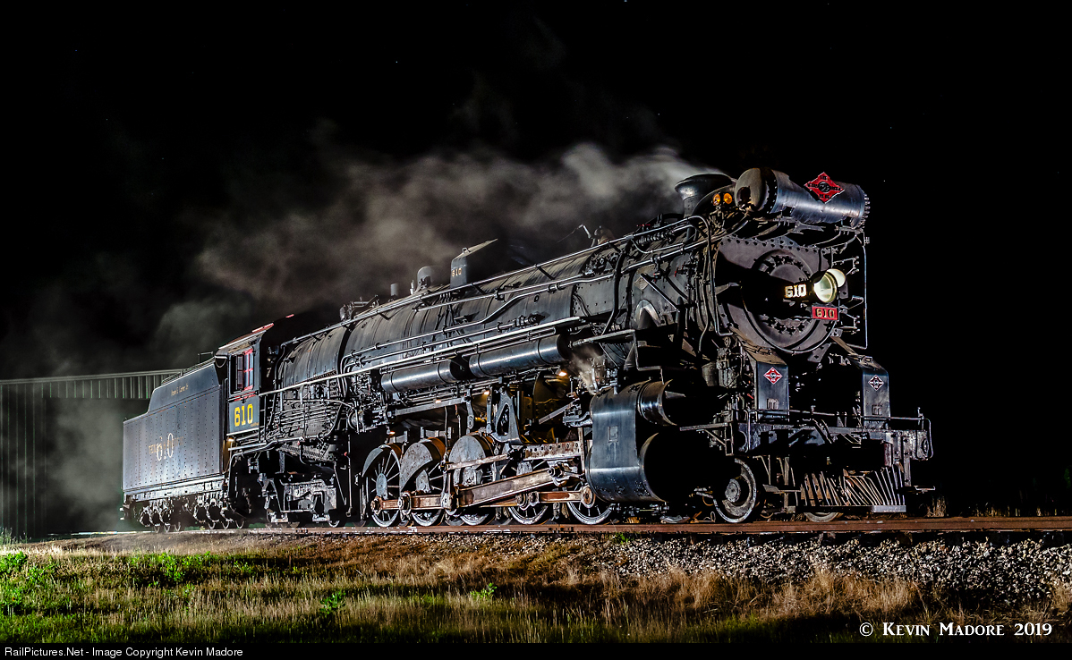 Fire up 610! Hey, if they could raise the millions to restore and operate Norfolk & Western 611....without a contract for a place to operate, surely someone could come up with the scratch to get this beast back in action. Well, we can dream, but for now, here's the next best thing. On the first night of our 2019 charter, Pete Lerro brought out his hot lights and the smoke bombs and for just a few minutes, the old girl looked like she was alive once again. It's very unlikely that the 610 will be anything more than a static display for the foreseeable future. For although it looks like she has a 25-mile railroad to run on, the truth is that the Texas State Railroad does not need a locomotive of this size and weight, and the wyes at either end would probably need to be reconfigured, as the curves are probably too tight for an engine with a wheelbase like this one.