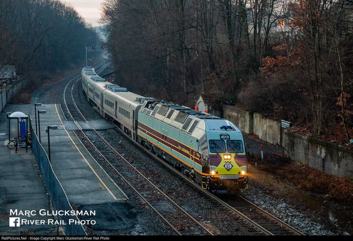 At dawn on January 15, 2020, NJ TRANSIT Train 871 approaches its stop at the Lake Hopactong, NJ station with NJTR 4519 (ALP45-DP) in the lead. This run would mark the first revenue run of this unit since the "EL" wrap was applied, and as an added bonus, it is on EL home rails.