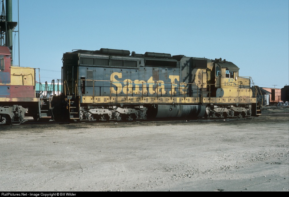 | An ex ATSF SD26 rests in the company of an exLV GP38-2 at the Portland Terminal facility, Rigby Yard, South Portland. |