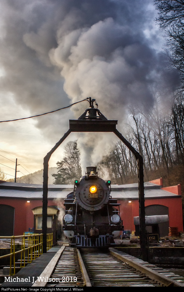 | "Frosty": Reading & Northern #425 simmers on the turntable lead on a cold Christmas Eve 2019 morning outside of Port Clinton, Pennsylvania. |
