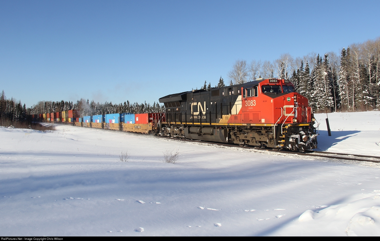 RailPictures.Net Photo: CN 3083 Canadian National Railway GE ET44AC at Aroland, Ontario, Canada by Chris Wilson
