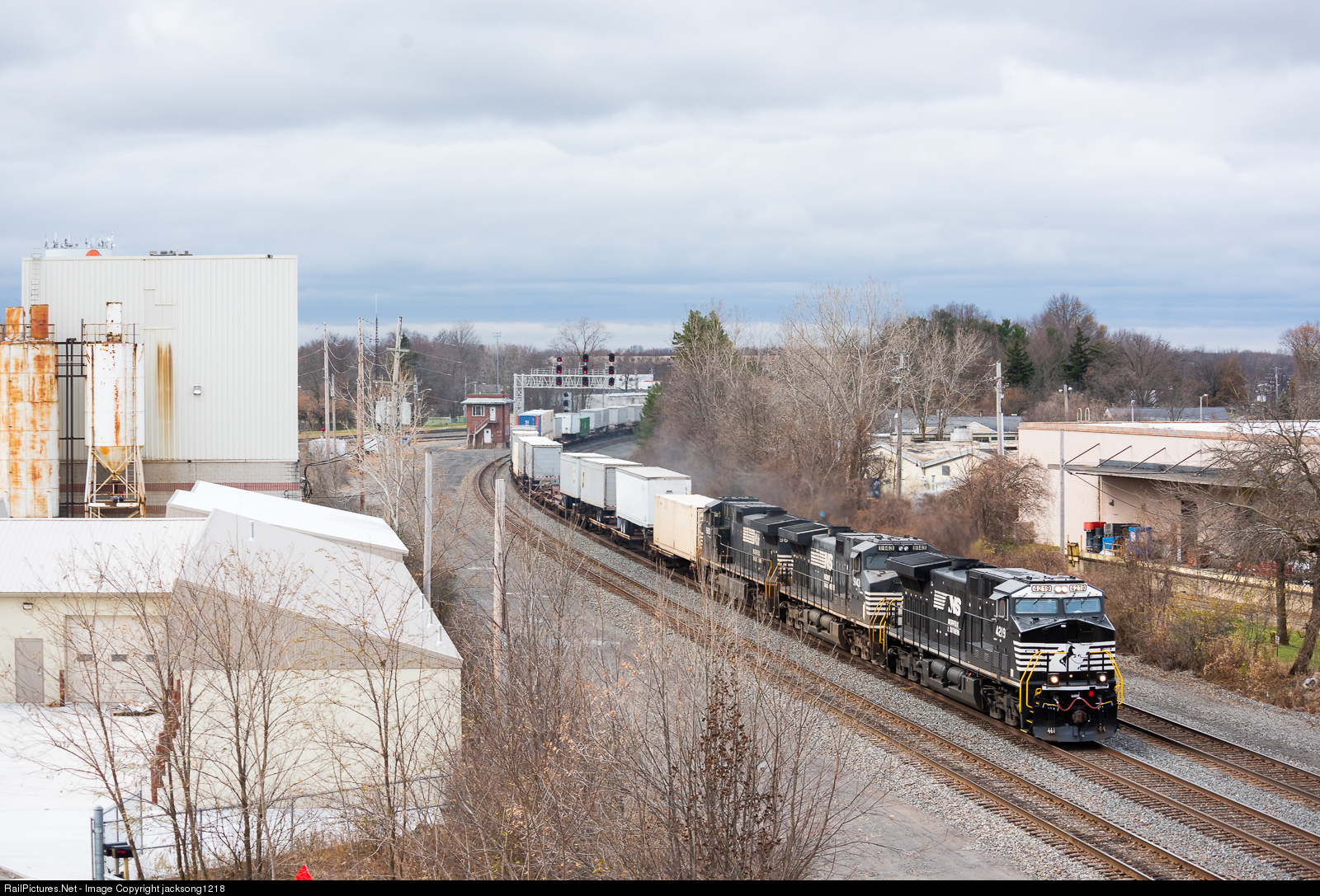 On Thanksgiving morning, NS train 24M (Chicago, IL - Baltimore, MD) passes through the Berea, Ohio interlocking with a freshly rebuild GE AC44C6M leading. In the background you can see the now dormant BE tower, which was once staffed around the clock to route trains through the area. Now only the WLE and the occasional local train use the crossover from CSX to NS.