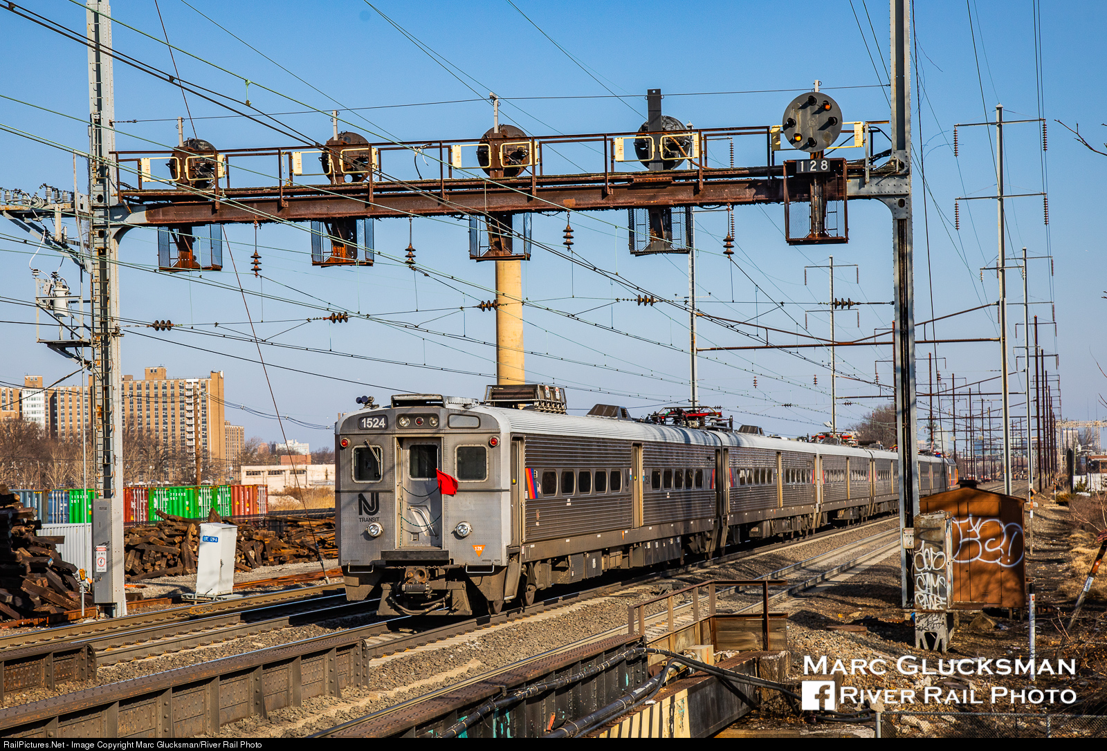 Don't pan this photo! NJ TRANSIT Arrow III 1524 is holding both the markers and the red flag as it passes through the North Elizabeth Station on Wednesday, January 15, 2020. Being towed by ALP-46A 4637, it is a six car set being moved for mechanical purposes not an in service train, thus its pantographs are down.