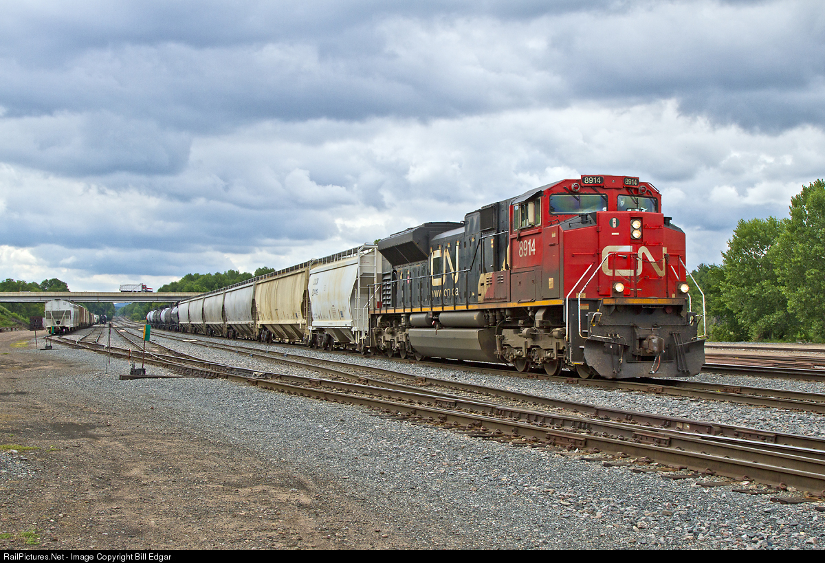 CN 8914 arrives at Chippewa Falls, WI after a day's work serving customers west of town. This local turn runs five and occasionally six days a week serving lumber, sand, grain and ethanol customers. This view shows the west portion of the yard, once owned by Soo Line. The east portion features a piggypacker and container handling facility.