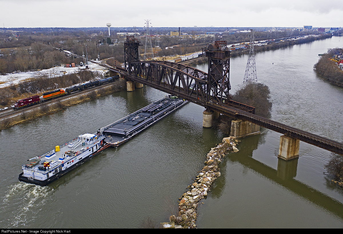 As a Helm GP38-2 and a BNSF SD40-2 shove back into the Joliet Yard, the Tori Pasentine makes a lucky appearance on the Des Plaines River.