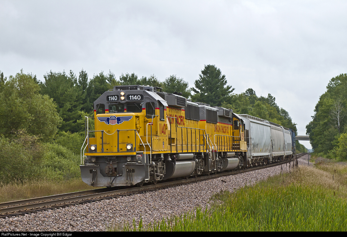 UP 1140 has its local rolling at track speed just east of Woodville, WI. The turn out of Altoona will work to Hudson, WI today with four cars to deliver before returning east to work its way back to Altoona, WI. This train handles local business on the mainline between Eau Claire and St. Paul, MN going west as far as Hudson.