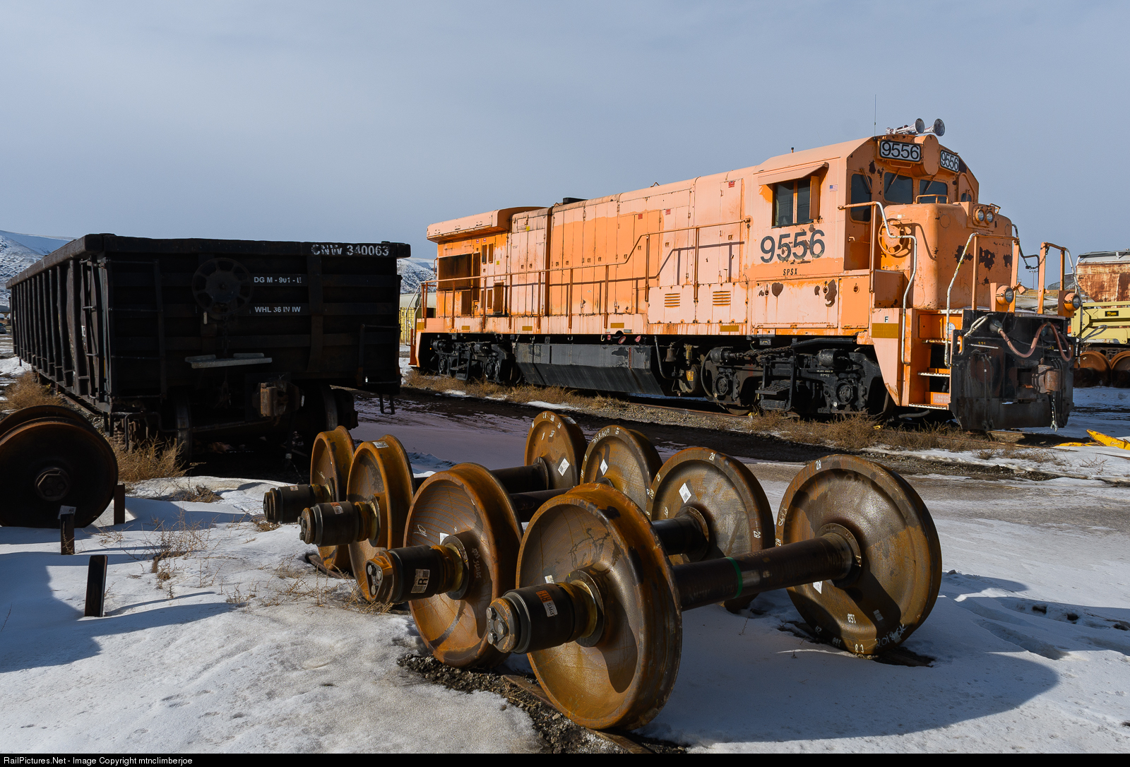 The Progress Rail Services freight car repair facility in Rock Springs, Wyoming rosters SPSX 9556 as their shop switcher. This B23-7 was formerly owned by CSX and used as part of their MOW fleet that wore a distinctive orange scheme.
