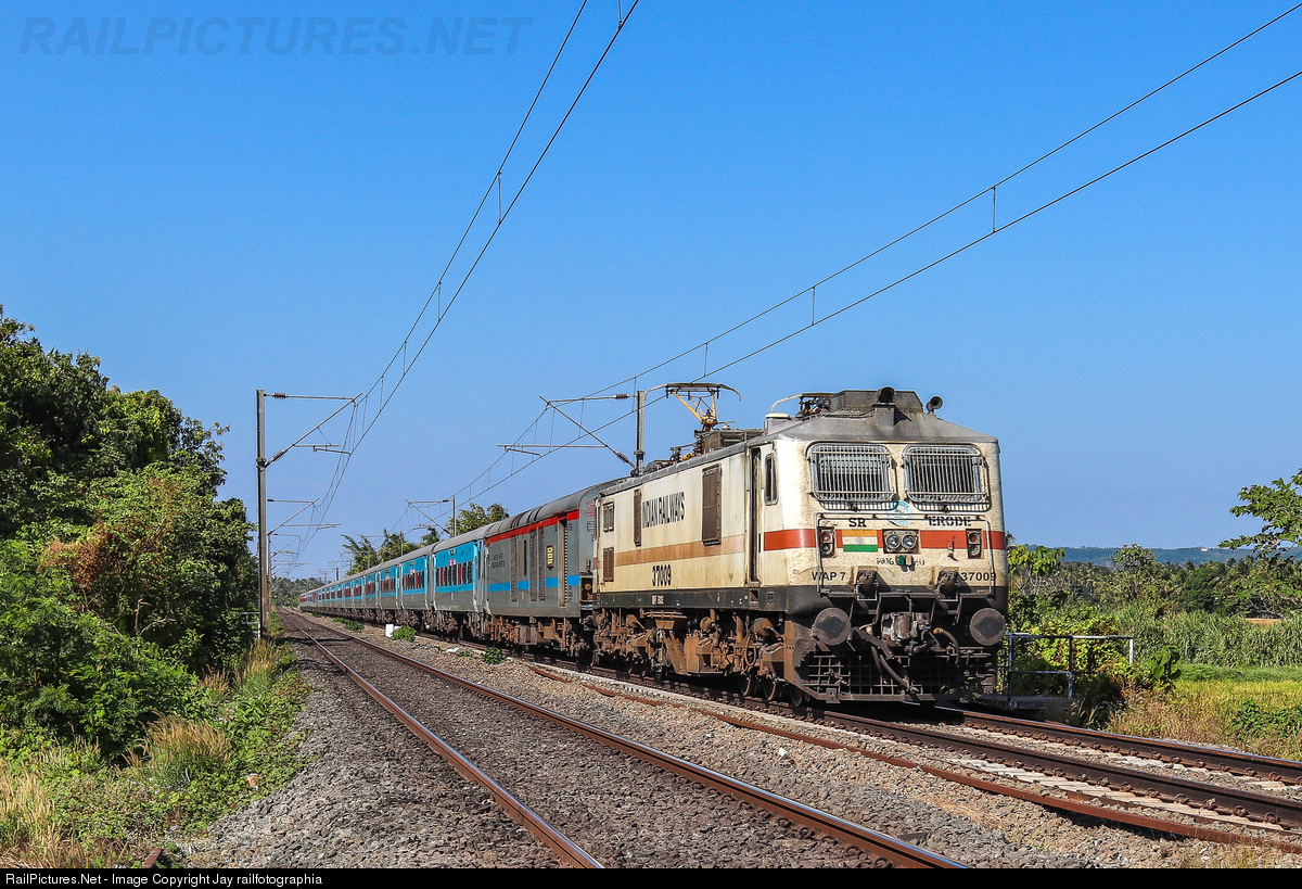 RailPictures.Net Photo: 37009 Indian Railways WAP-7 at Thrissur, India by Jay railfotographia