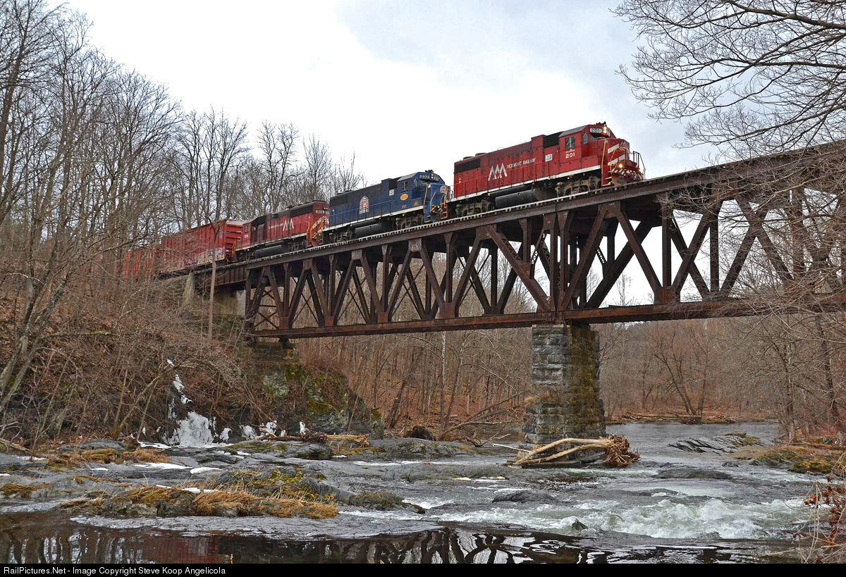 | Vermont Railway's Hoosick Junction, NY to Rutland, VT train HJRD crossing the Walloomsac River at North Hoosick, NY. |