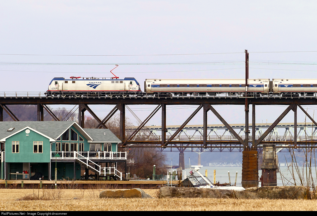 | Amtrak Sprinter ACS-64 639 westbound at Havre de Grace, Maryland at 12:45 p.m. on February 6, 2019. |