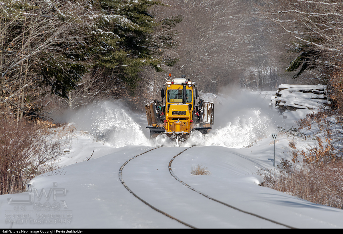 | On February 8, a Vermont Rail System Kershaw Ballast Regulator-equipped snowplow (KBR-850) is clearing overnight accumulation along the GMRC Bellows Falls Subdivision at Chester, VT. |