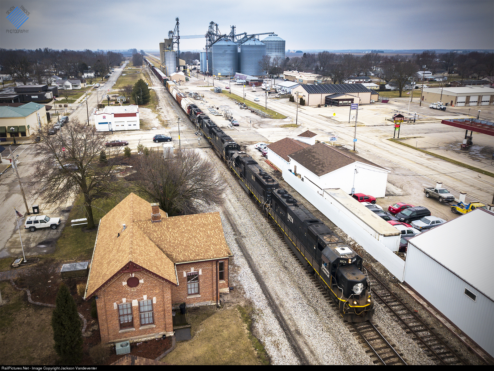 With four IC SD70s (IC 1024, 1033, 1007, & 1025) and a CN SD60 that doesn't seem to fit the rest, A407 cuts through the center of Arcola, making plenty of noise for the four crossings in town. In the left side of the picture stands an old IC depot, built in 1885. This depot is not the original depot, as that one burned in a fire in 1882. One can still go inside the depot today since it survives as the town's tourist center.