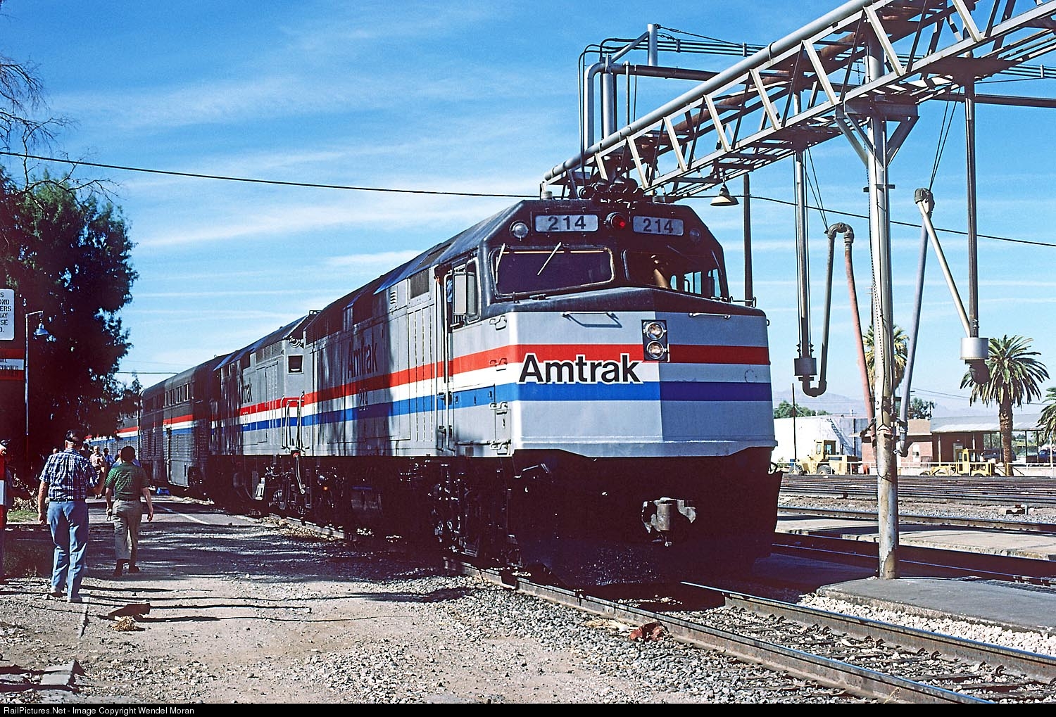 | The "Parker Peavine Extra" pauses for a crew change at Needles. The train was a unique three day circle trip from Los Angeles on ATSF. Day one was Los Angeles to Flagstaff. On the second day the train ran from Flagstaff to Phoenix via Ash Fork. The last day the train returned to LA via Parker and Cadiz. |