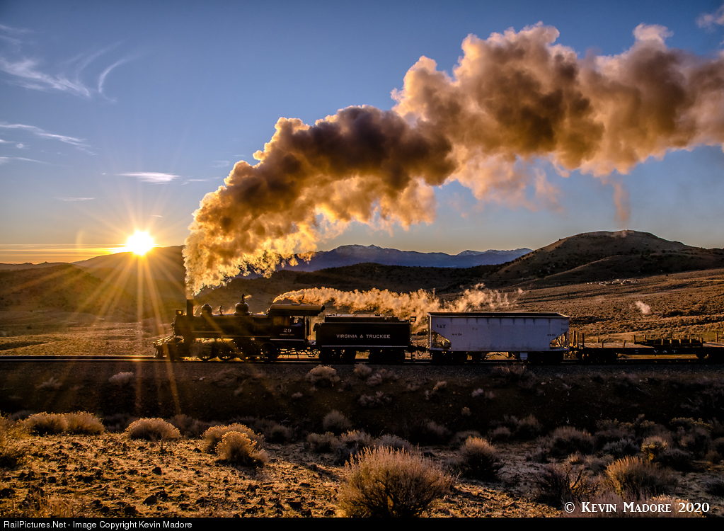 Sunrise at Scales. Just moments after the sun crested the hills to the east, a V&T freight charges north past Scales on its morning run to Gold Hill, and ultimately, the mining town of Virginia City.