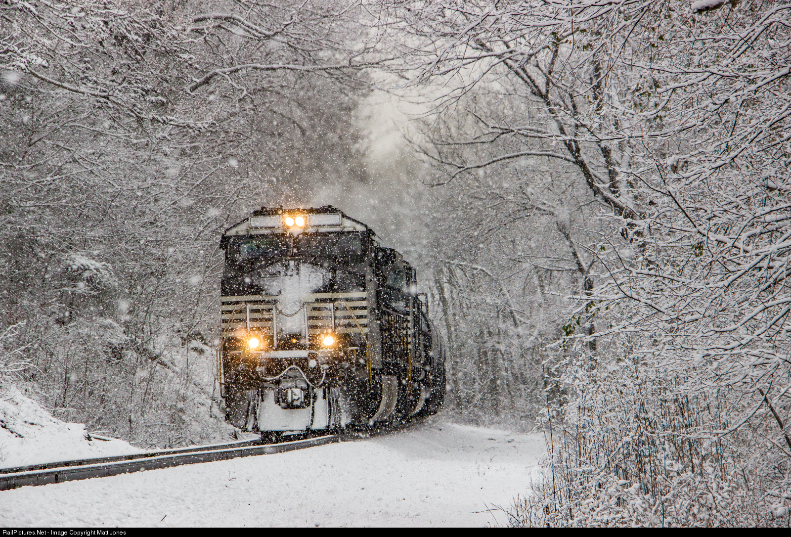 NS run through mixed freight has them throttled up as it makes a run for the steep Raccoon Mountain grade during a heavy snow shower that dumped nearly five inches on the greater Chattanooga area.