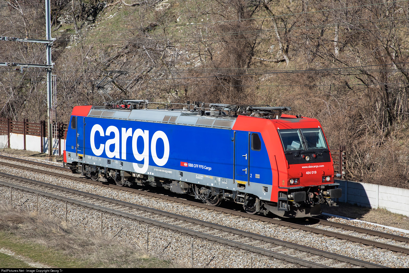 | Re 484 # 019 of the SBB (Bombardier TRAXX F140 MS), running for SBB Cargo International, coming back from a pusher service on the Lötschberg south ramp, between Lalden and Brig. The locomotive shoved train 43716 with about 1700 ton between Domodossola and Goppenstein before, see photo https://www.railpictures.net/photo/726083/ |